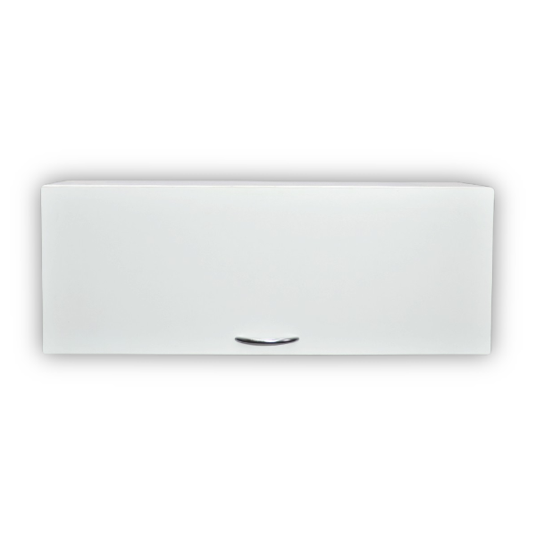 Alacena de melamina de 18mm blanca marca Egger de 80cm de largo por 30cm de alto x 30 cm de profundidad, 1 Puerta volcable ciega, bisagras metálicas, manija metálica, pistón a gas, filo de pvc de 0.5 pegado a maquina con dos escuadras metálicas para su correcta sujeción.